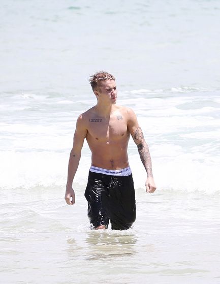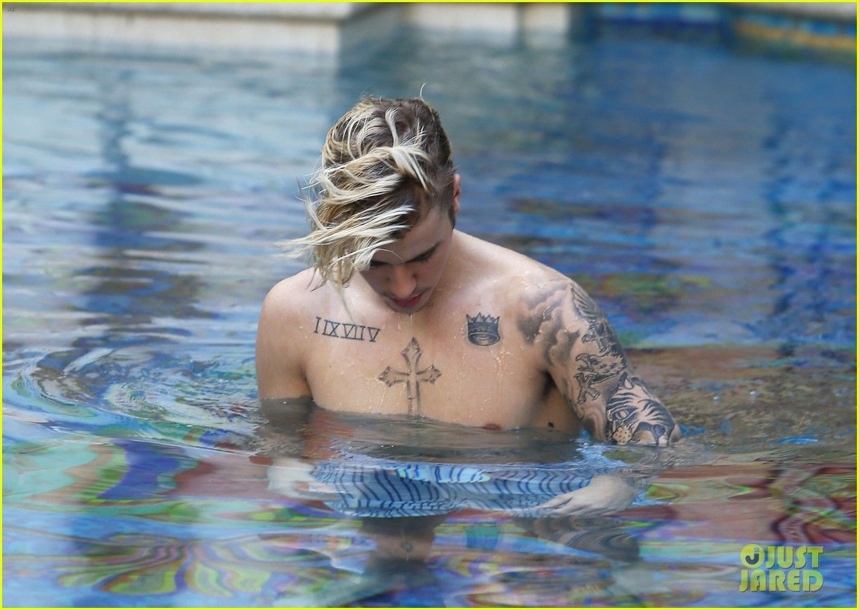 Justin. Justin masih belum memakai baju, padahal cuacanya dingin. Oh, di sini