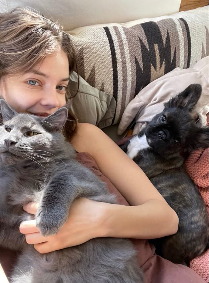 langsung naik ke sofa dan mencoba untuk ikut berbaring di sebelah Justin.